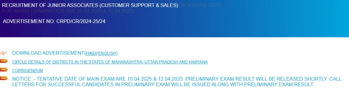 Download Mains Exam Date Notice |